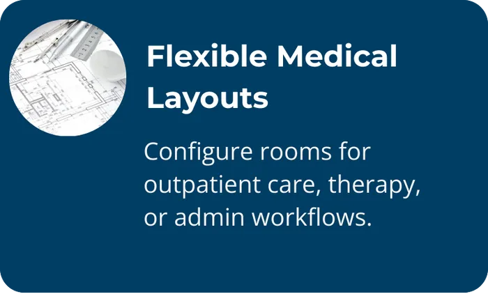 Yes. Each suite offers a flexible layout that can be adapted for various medical specialties, including outpatient clinics, therapy centers, and administrative offices.